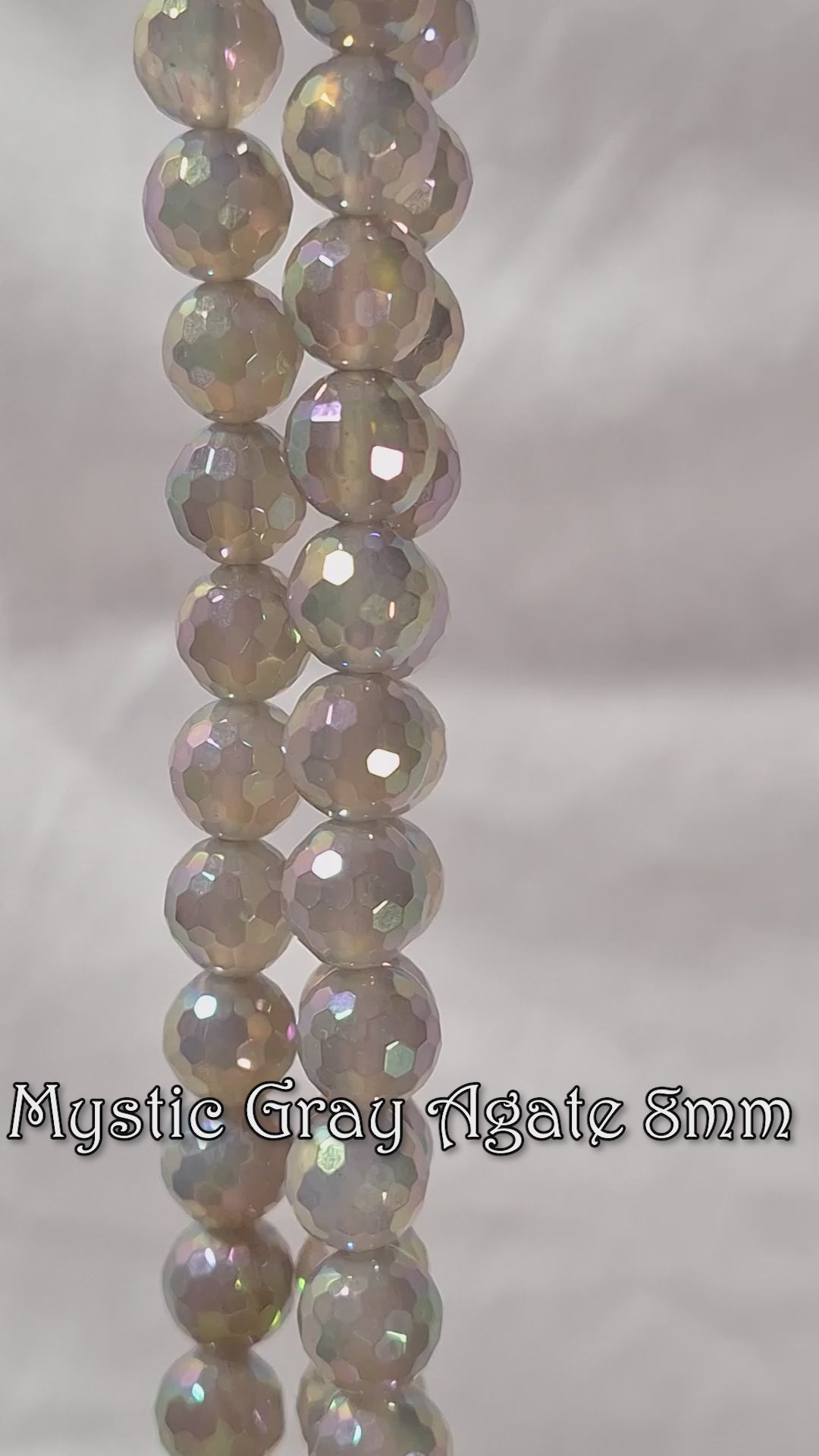 8mm Mystic Agate Gray Faceted Round Gemstone Beads 8-Inch Strand