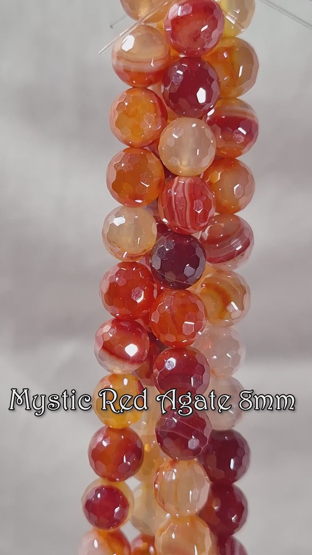 8mm Mystic Red Agate Faceted Round Gemstone Beads 8-Inch Strand