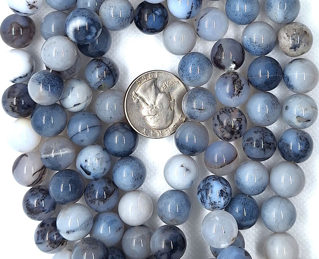 Black moss agate 12mm round gemstone beads. Each package is one 16-inch strand, which is about 33-34 beads. The hole size is approximately 1mm. You will receive beads from the same batch as those pictured; these are representative of the actual beads being sold here, not picked through for the best examples. These beads are acquired in bulk, and often little is known about their origins; identification is made based on appearance, and enhancements are noted whenever possible. We're happy to answer any questions you might have about these, and represent their grade to our best ability. Please note that these are natural products with the attendant variations in color and shape, and the appearance may change slightly from one monitor to another. Check out our other products for an amazing selection of beads, cabochons and findings, and to save big on shipping.