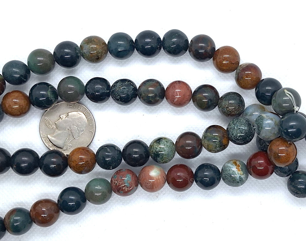 Bloodstone or fancy jasper 12mm round gemstone beads; these came in marked as bloodstone, but we're not certain it's accurate based on the appearance and may be "fancy jasper" instead (please see pictures to make your own determination). Each package is one 16-inch strand, which is about 33-34 beads. The hole size is approximately 1mm. You will receive beads from the same batch as those pictured; these are representative of the actual beads being sold here, not picked through for the best examples. These beads are acquired in bulk, and often little is known about their origins; identification is made based on appearance, and enhancements are noted whenever possible. We're happy to answer any questions you might have about these, and represent their grade to our best ability. Please note that these are natural products with the attendant variations in color and shape, and the appearance may change slightly from one monitor to another. Check out our other products for an amazing selection of beads, cabochons and findings, and to save big on shipping.
