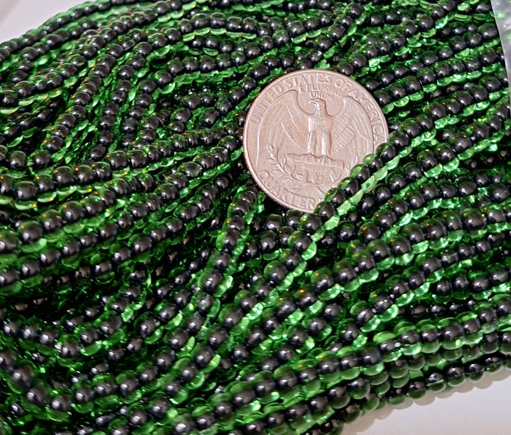 6/0 transparent light green with black lining Czech seed beads from Preciosa. You will receive four 20-inch strands per lot, which is about 730-750 beads. Quarter is pictured for size comparison purposes only. Shipping is a flat rate for any size of order within the United States, so make sure to browse for all your essentials.