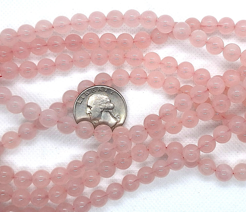 High-quality rose quartz 8mm round gemstone beads. Each package is one 16-inch strand, which is about 50 beads. The hole size is approximately 1mm. You will receive beads from the same batch as those pictured; these are representative of the actual beads being sold here, not picked through for the best examples. These beads are acquired in bulk, and often little is known about their origins; identification is made based on appearance, and enhancements are noted whenever possible. We're happy to answer any questions you might have about these, and represent their grade to our best ability. Please note that these are natural products with the attendant variations in color and shape, and the appearance may change slightly from one monitor to another. Check out our other products for an amazing selection of beads, cabochons and findings, and to save big on shipping.